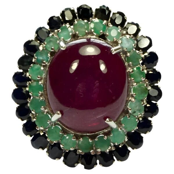 Sterling Silver Ring with Sapphire, Emerald and Ruby