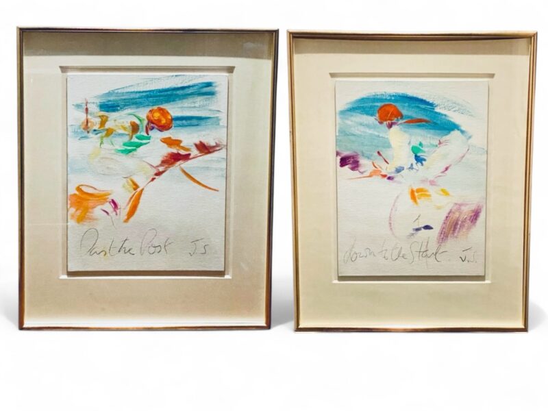 Wonderful Pair of Racing Scenes; Acrylics on Board, Jake Sutton (British, b.1947)