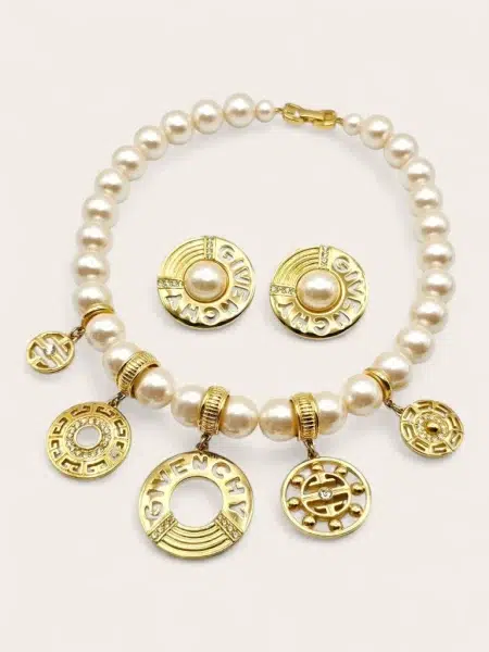 GIVENCHY PEARLS CHOKER NECKLACE AND EARRINGS SET (VINTAGE)