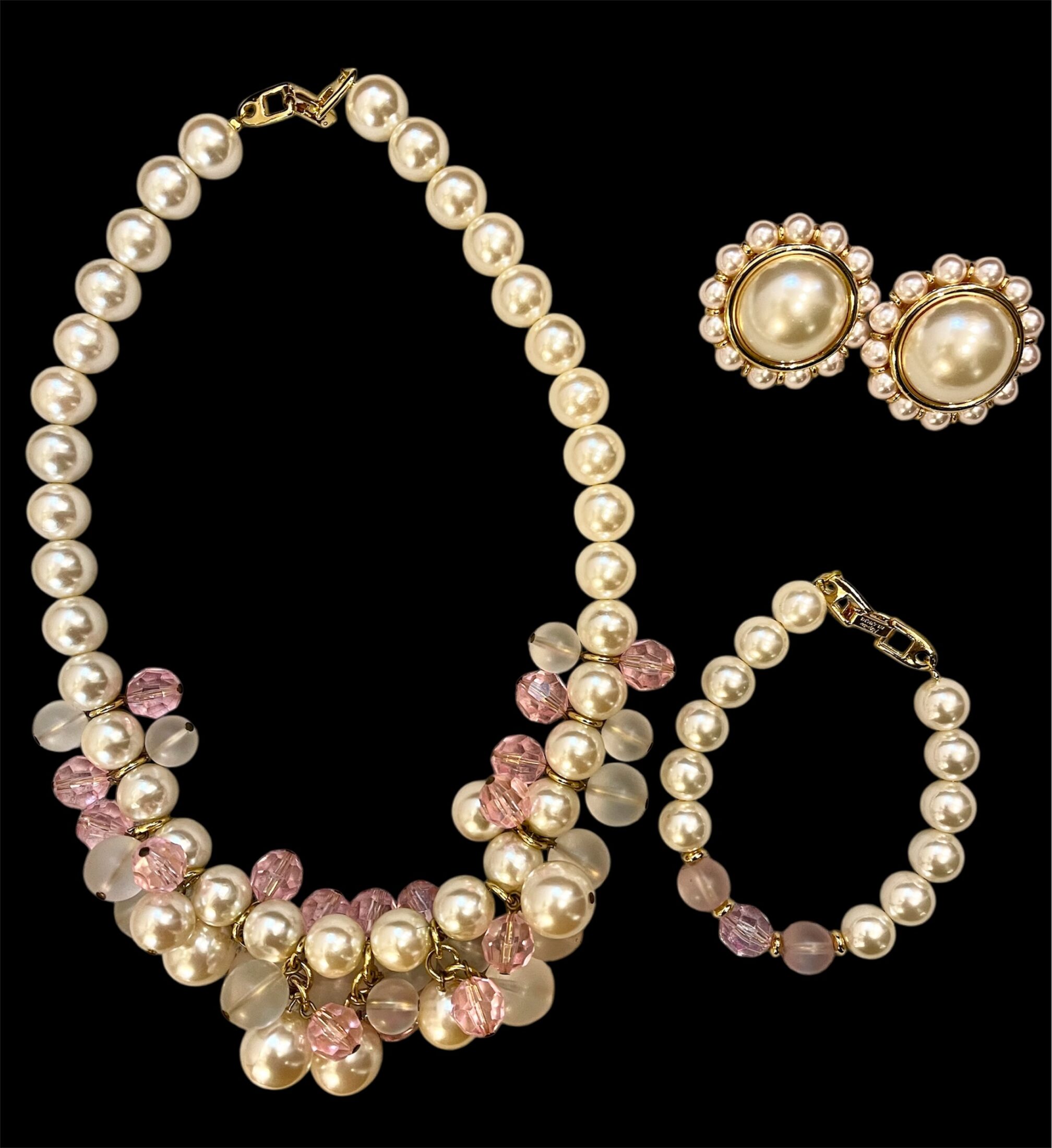 A classic parure of faux pearl and pink crystal by Napier