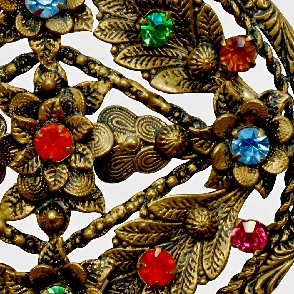 Czech Gilt Metal Multi Glass Floral Brooch circa 1930s