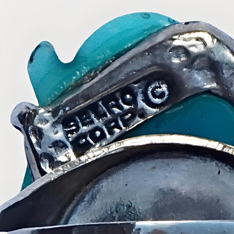 Selro Silver Plated Blue Noh Okina Mask Necklace Bracelet Ring Set circa 1950s